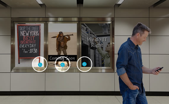 Your clients' customers tap their smart phones on the "E" to be personally engaged on demand!