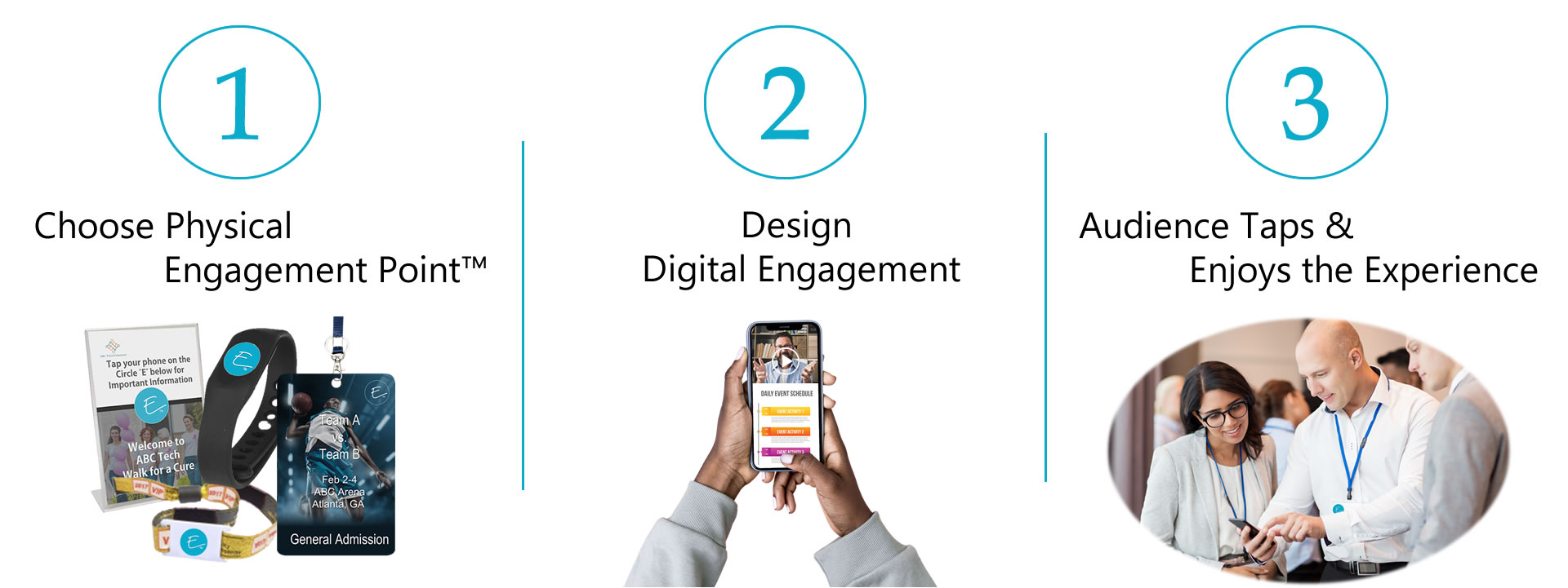 Leveraging eSmart® Tap Technology devices affixed anywhere within your physical space or on your products (both encompass your eSmart® ecoSystem), customers are able tap their phone on the technology (called eSmart® Engagement Points™) with their smartphone and receive custom content. The tech requires no special equipment or apps and is available in almost all modern smartphones.